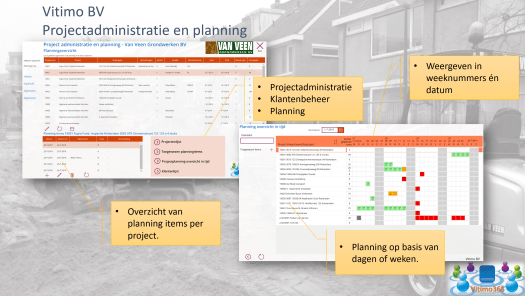 Vitimo heeft een mooie Projectadministratie en planningstool ontwikkeld. Met deze tool wordt de administratieve last verlicht.